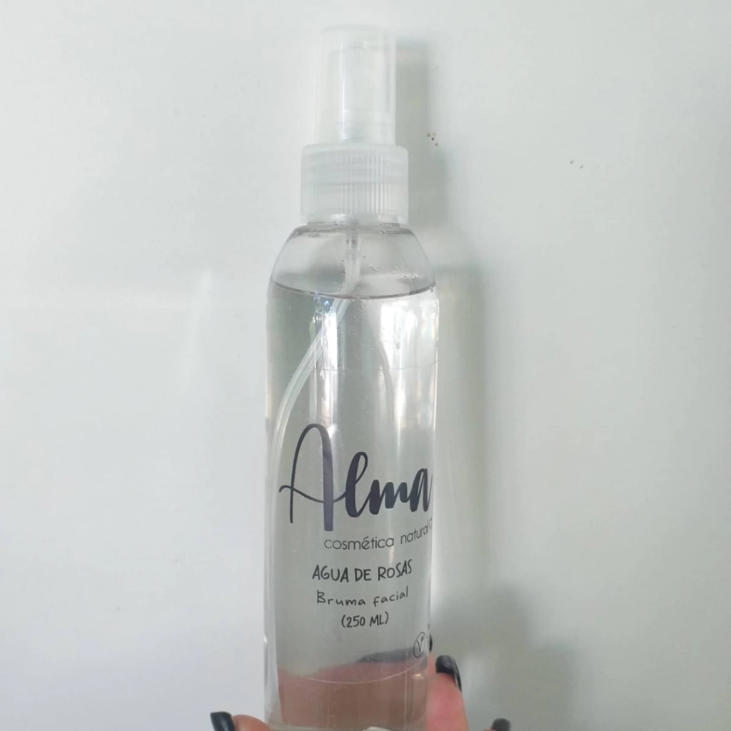 La bruma facial Alma es de agua de rosas, un extracto natural que se obtiene de los pétalos de la flor de rosas.